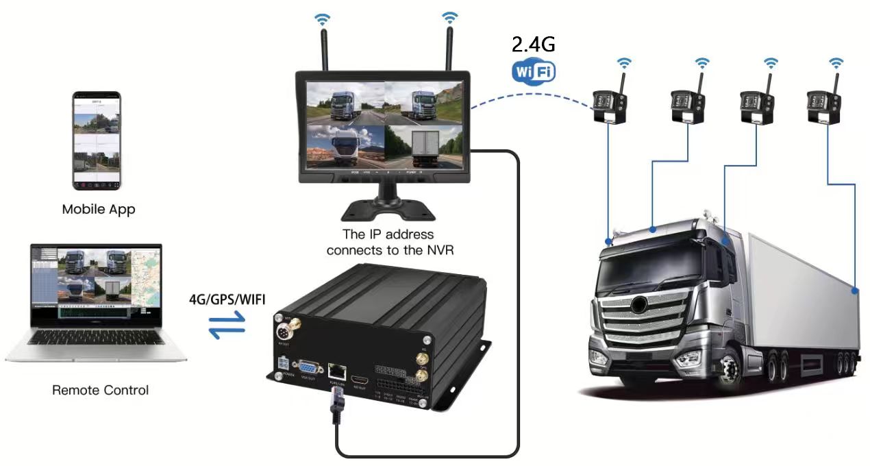 Carleader 10.1 ইঞ্চি 4CH ওয়্যারলেস HDD মোবাইল NVR সিস্টেম, একটি অত্যাধুনিক মোবাইল NVR সিস্টেম যা বহর পরিচালনার জন্য ডিজাইন করা হয়েছে। সিস্টেম 4pcs ওয়্যারলেস আইপি ক্যামেরা ব্যবহার করে 2.4GHz সিগন্যালের মাধ্যমে একটি 10.1 ইঞ্চি ওয়্যারেলস মনিটরের সাথে জোড়া, তারপর একটি RJ45 সংযোগকারীর সাথে মন্টির এবং NVR সংযোগ করুন। এক্সট্রা ওয়্যারিং সমস্যার প্রয়োজন নেই, ইনস্টলেশন এবং ফ্লিট পরিচালনার জন্য আরও কার্যকর।