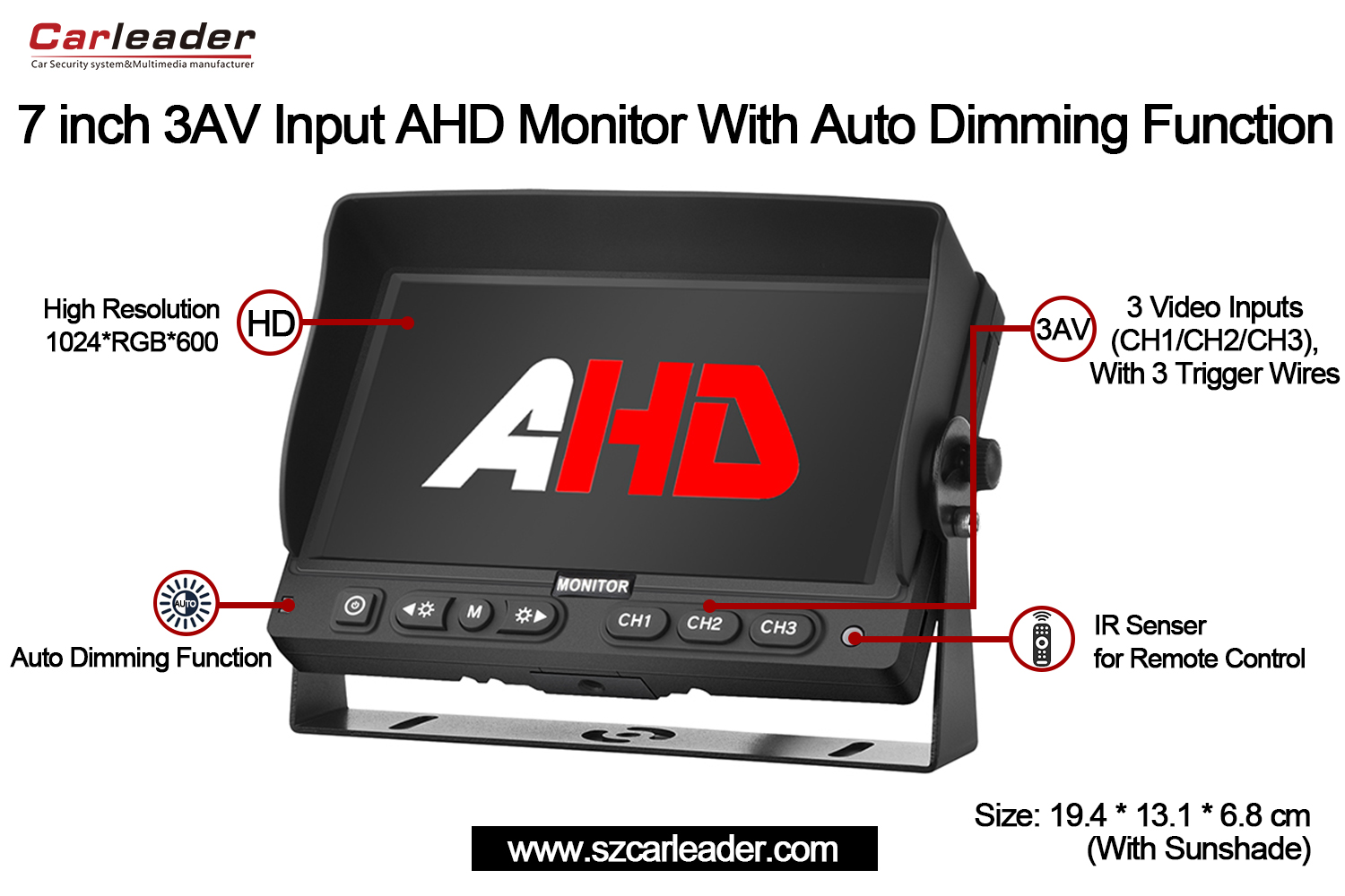 বহর পরিচালনা, সুরক্ষা পর্যবেক্ষণ বা শিল্প ব্যবহারের জন্য উপযুক্ত, কার্লিডার 7 ইঞ্চি 3Ch এএইচডি যানবাহন মনিটরের একটি কমপ্যাক্ট আকারে নির্ভরযোগ্যতা, বহুমুখিতা এবং ব্যবহারকারীকেন্দ্রিক উদ্ভাবনকে একত্রিত করে।