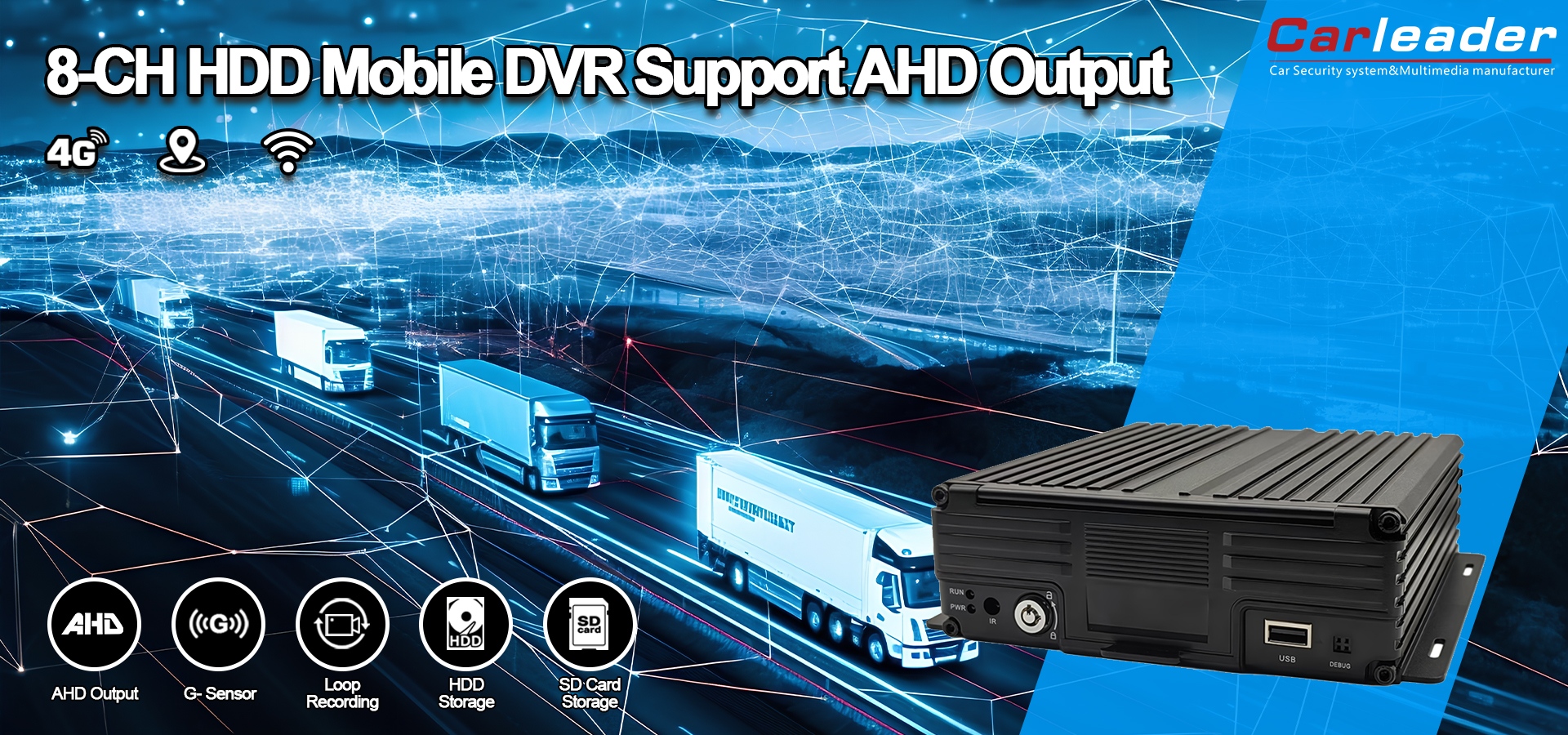 কারলিডার8CH 1080P HDD মোবাইল DVR সাপোর্ট AHD আউটপুট আইডিয়াল ফ্লিট ম্যানেজমেন্ট এবং ট্র্যাকিং, পাবলিক ট্রান্সপোর্ট নিরাপত্তা, আইন প্রয়োগকারী এবং জরুরী যানবাহন, লজিস্টিক এবং কার্গো পরিবহন, ব্যক্তিগত এবং বাণিজ্যিক যানবাহনের নিরাপত্তার জন্য