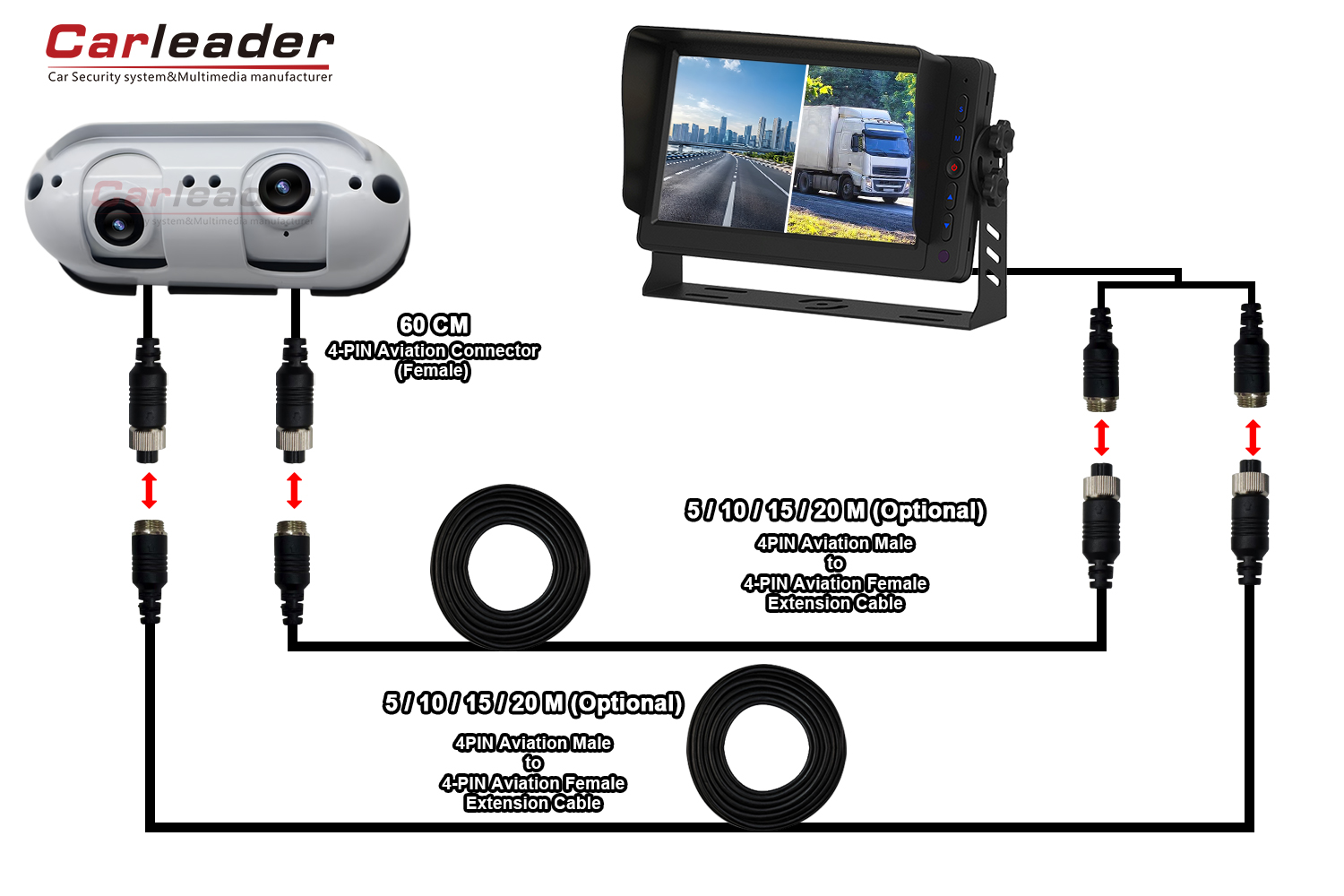 কার্লিডার AHD স্টারলাইট ডুয়াল লেন্স হেভি ডিউটি রিয়ার ভিউ ক্যামেরার জন্য দুটি ভিন্ন ওয়্যারিং সলিউশন অফার করবে, বিভিন্ন ওয়্যারিং প্রয়োজনের জন্য: