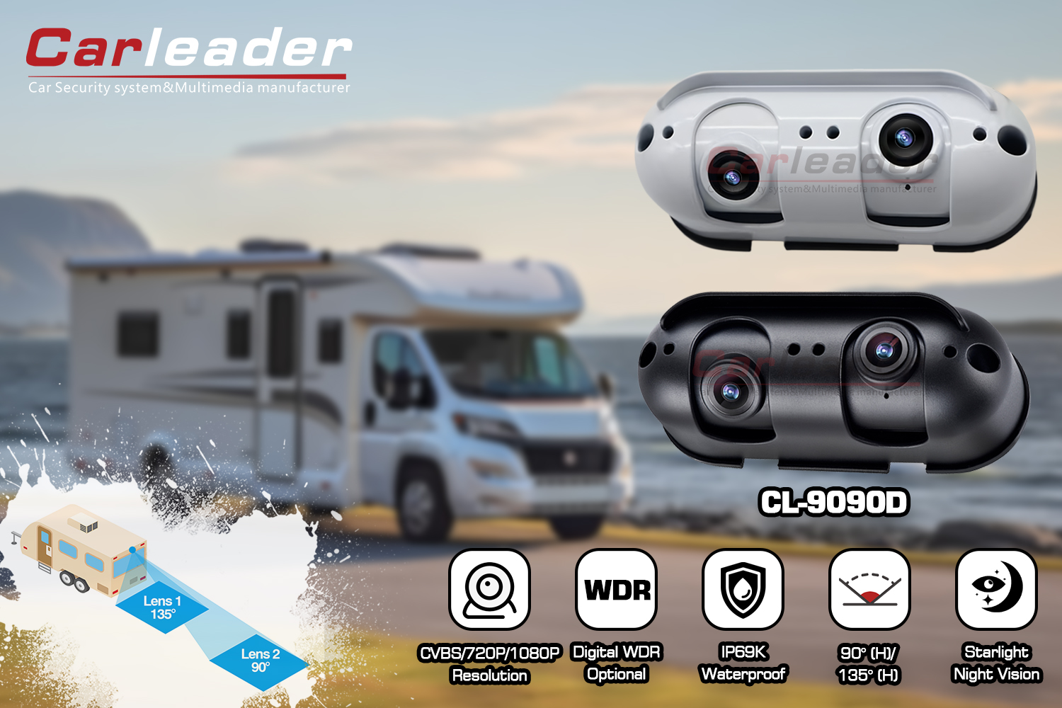 কারলিডারAHD স্টারলাইট ডুয়াল লেন্স রিয়ার ভিউ ক্যামেরা আরভি মোটরহোমের জন্য উপযুক্ত, Carleader থেকে একটি প্রাইভেট টুলিং AHD রিয়ার ভিউ ক্যামেরা, ডুয়াল লেন্স ডিজাইন ব্যবহারকারীকে কাছাকাছি এবং দূরের রিয়ারভিউ দৃষ্টিশক্তির একটি স্পষ্ট দৃশ্যমানতা প্রদর্শন করতে দেয়। এর অ্যালুমিনিয়াম অ্যালয় হাউজিং এবং IP69K রেটিং ক্যামেরাটিকে যেকোনো কঠোর আবহাওয়ায় আরও মজবুত এবং টেকসই করে তোলে। এই ক্যামেরাটি শুধুমাত্র ভারী শুল্কের জন্য উপযুক্ত নয়, যেমন ট্রাক, বাস, ফর্কলিফ্ট ইত্যাদি; আরভি এবং ক্যারাভানের মতো মোটরহোম গাড়ির জন্যও উপযুক্ত।